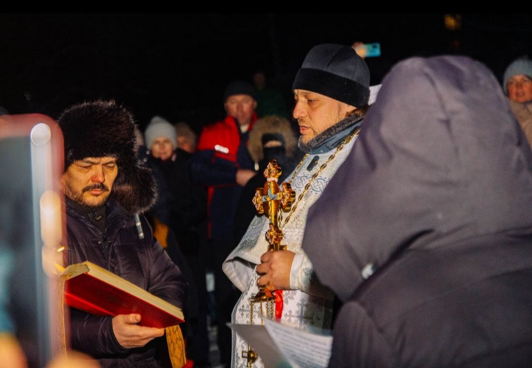 Божественную литургию отслужил настоятель храма иерей Виталий партий. По окончании литургии был совершен чин великого освящения воды, который по традиции совершается в этот день во всех православных храмах.